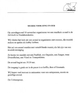 Muziekavond in de ARK op 18 november 2023 Muziekavond in de ARK op 18 november 2023 7 november 2023 Jaap Starke